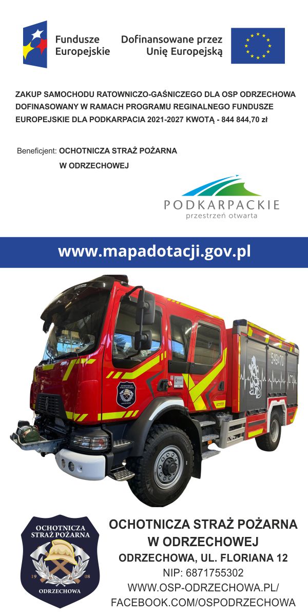 Zapraszamy wszystkich mieszkańców naszej miejscowości oraz sympatyków jednostki OSP KSRG Odrzechowa na powitanie nowego średniego samochodu ratowniczo-gaśniczego, które odbędzie się w dniu 28.02.2025 o godz. 18:00 przy Domu Ludowym w Odrzechowej.